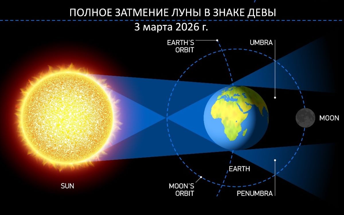 3 марта 2026 года проходит Полное затмение Луны в 13 градусе знака Девы, которое в первую очередь, затрагивает тех, кто родился в конце августа - начале сентября, в конце февраля-начале марта, в конце ноября-начале декабря, в конце мая - начале июня. А также, тех, у кого выражены первые половины знаков, ДЕВА-РЫБЫ-БЛИЗНЕЦЫ-СТРЕЛЕЦ. Прямо сейчас касается тех, кто родился в первые числа своих месяцев (начало сентября-марта, начало июня-декабря, начало мая-января). Затмение проходит в период с 12:49 по 16:17 мскв. Пик точной фазы затмения приходится на 14:33:23 мскв. Во время затмения надо соблюдать спокойствие, не кричать, не провоцировать окружение на конфликты, не употреблять алкоголь и тем более, наркотики, хорошо практиковать релаксацию, медитацию. Накануне затмение рекомендует провести генеральную уборку и чистку организма. Лучше не предпринимать серьёзных действий, мед. операций, процедур, финансовых сделок. Под влиянием Лунных узлов некоторые люди попадают в бурный гормональный шторм, когда желания обостряются, эмоции и чувства перекрывают разум, пробуждается нижняя чакра, которая отвечает за укоренение, зачатие и сексуальную активность.